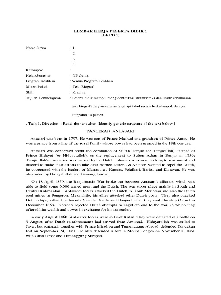 Teks Biografi Pangeran Antasari