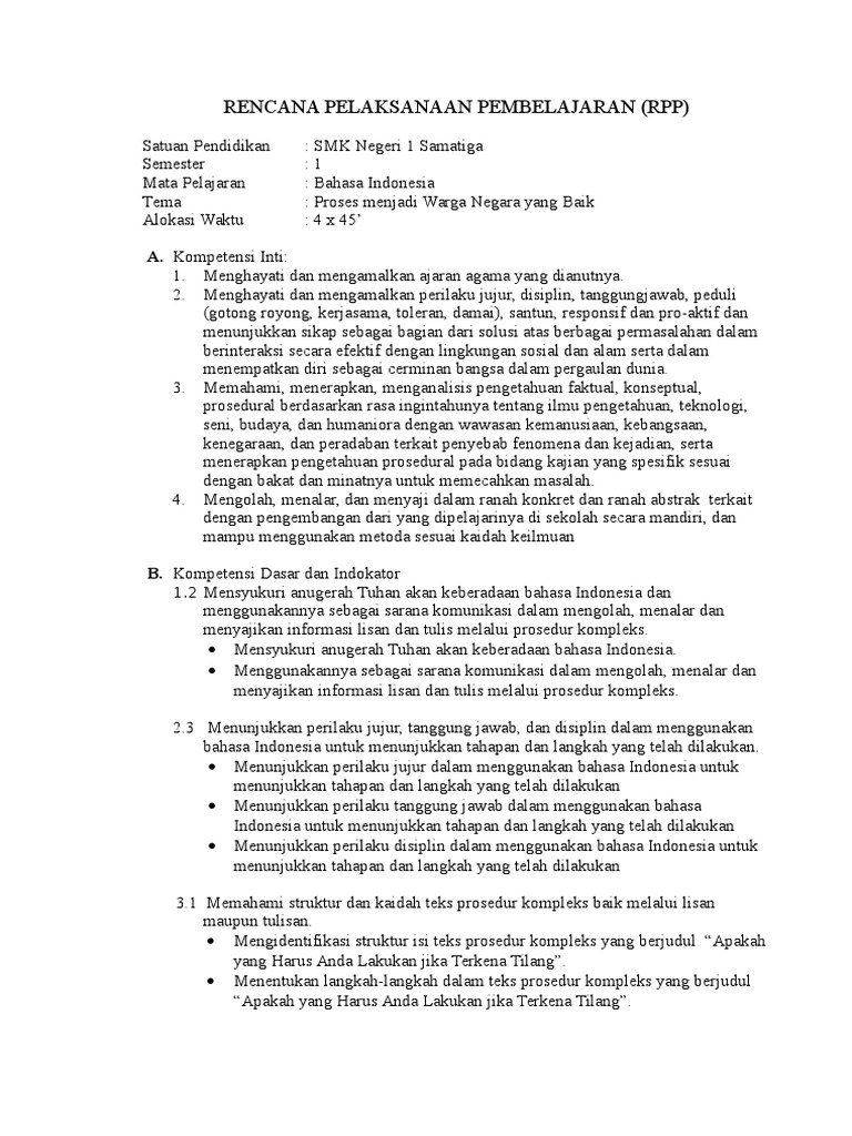Bahasa Indonesia Pelajaran 2 (Kelas X).docx - Pelajaran II Proses Menjadi Warga yang Baik Kegiatan 1 Pemodelan Teks Prosedur Kompleks Tugas 1 Membaca | Course Hero