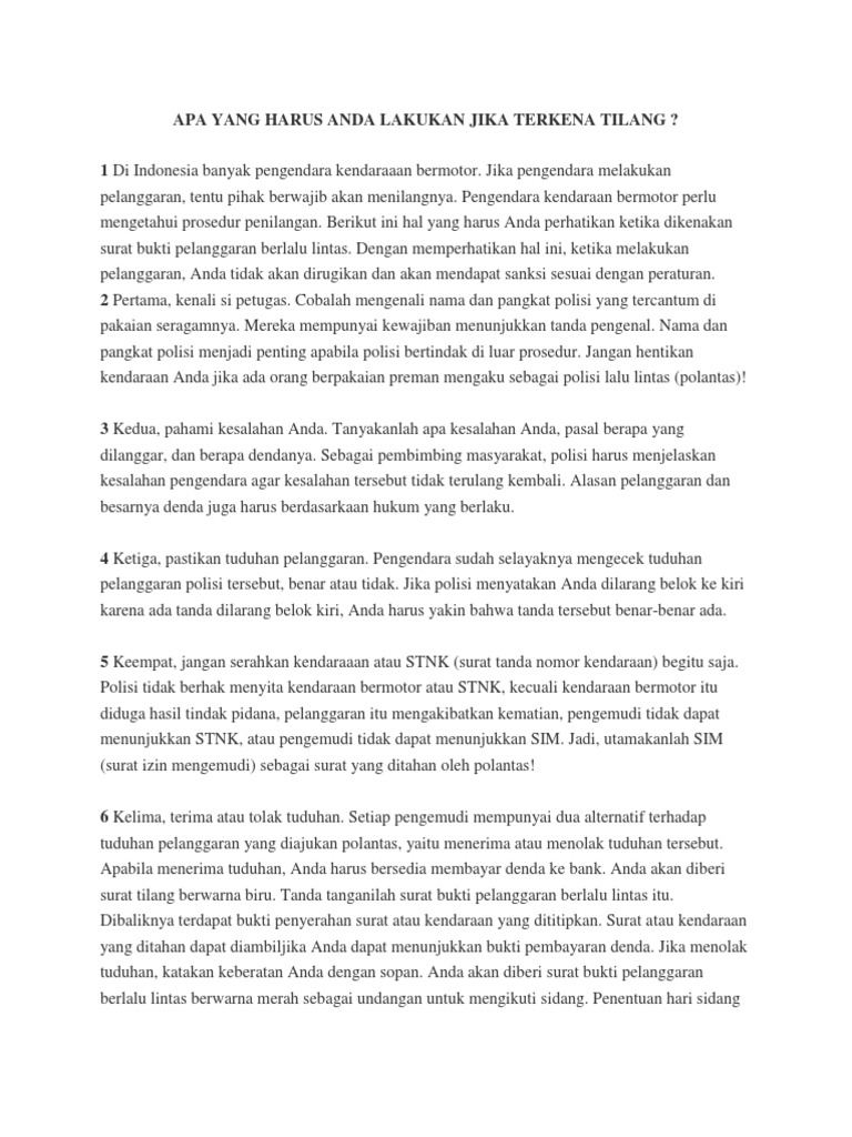 DOC) APA YANG HARUS ANDA LAKUKAN JIKA TERKENA TILANG | Annisa Rosena - Academia.edu
