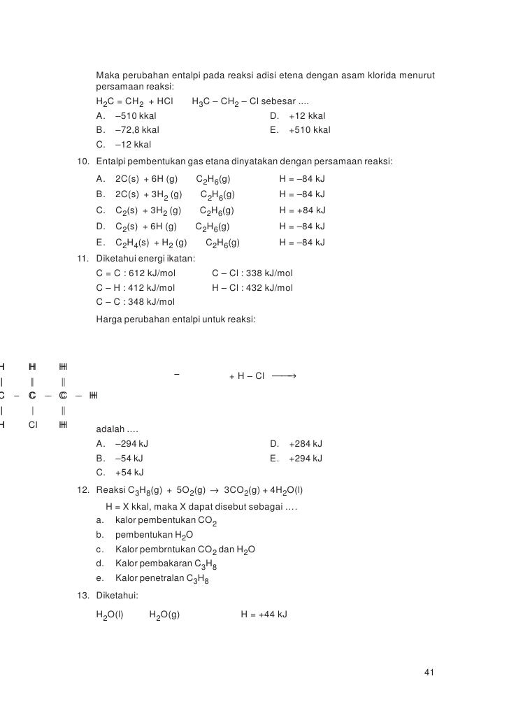 Bank Soal Kimia Bab Termokimia Dan Hidrokarbon