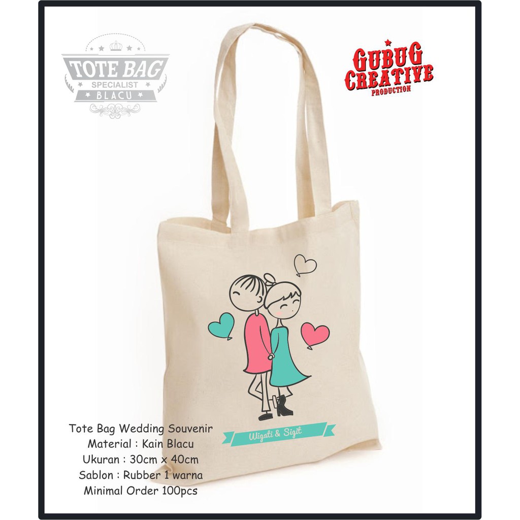 Tote Bag Blacu Souvenir Pernikahan,Tote Bag Costum Desain | Shopee …