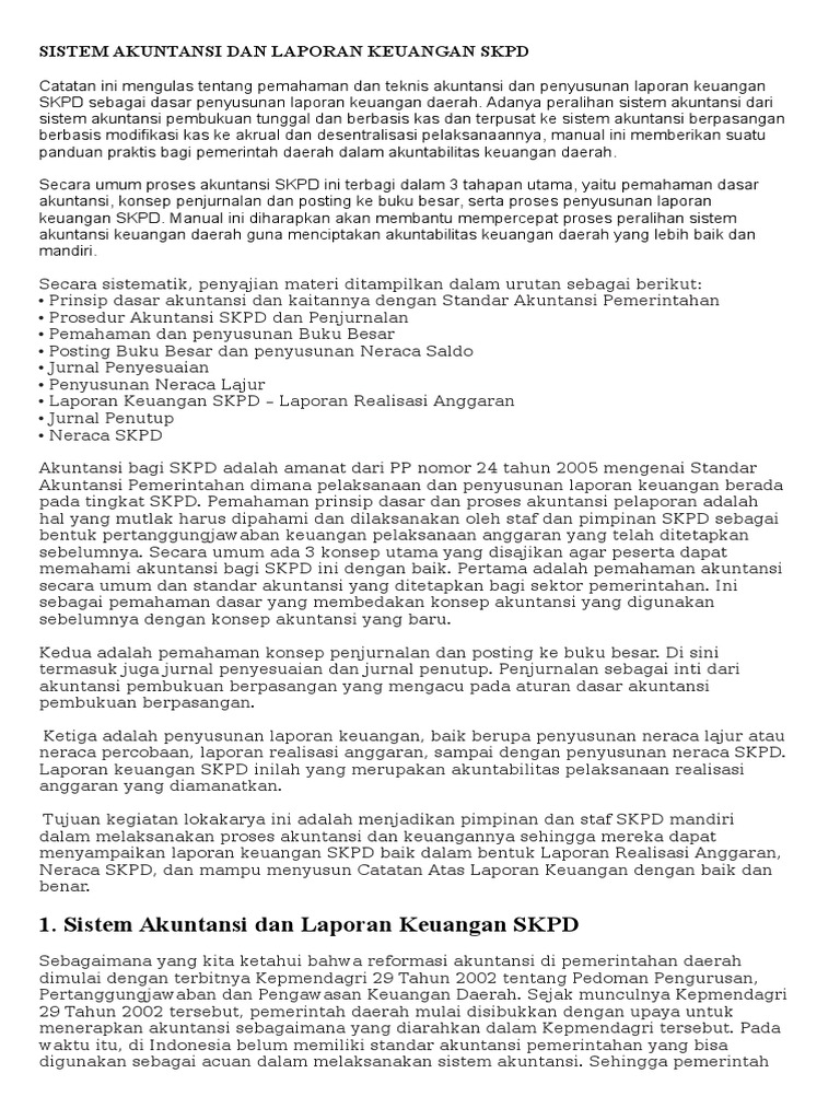 Sistem Akuntansi Dan Laporan Keuangan Skpd