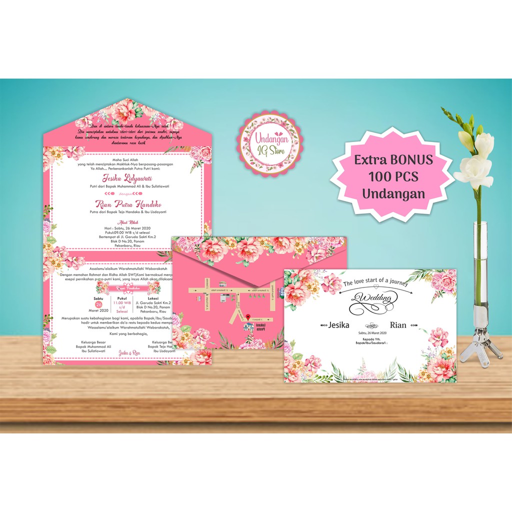 Undangan pernikahan MURAH custom motif sweet flower elegan | Shopee Indonesia