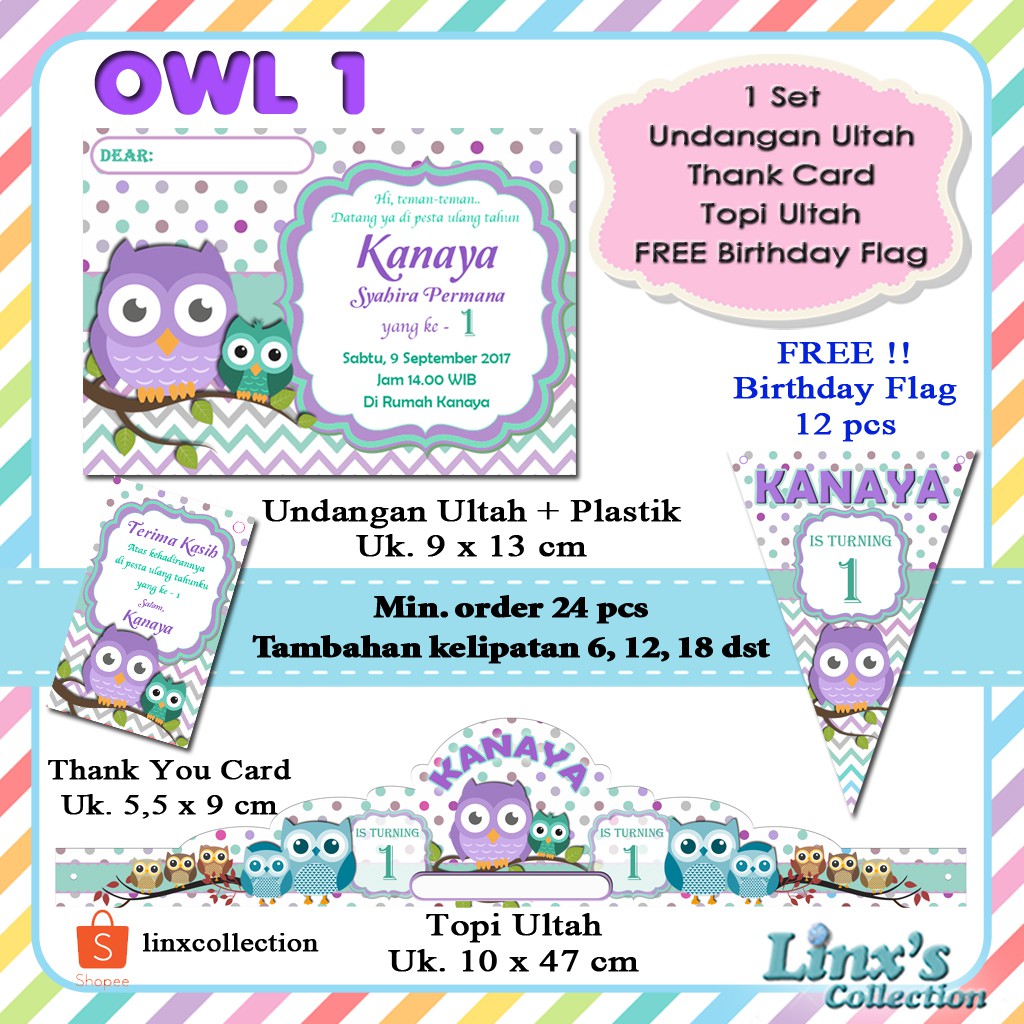 Souvenir Ultah 1 set undangan Ultah Anak/Kartu souvenir/topi ulang tahun Owl | Shopee Indonesia