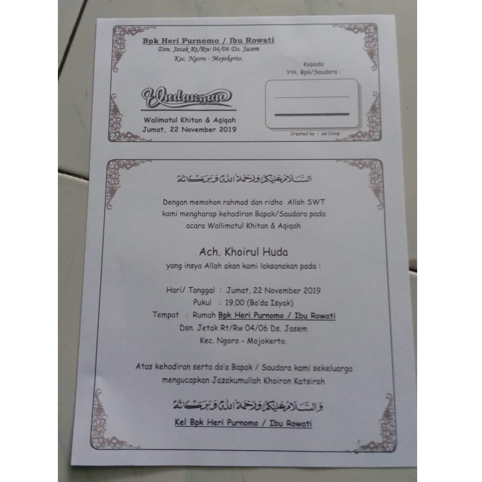 Undangan walimatul khamli siti munjillah