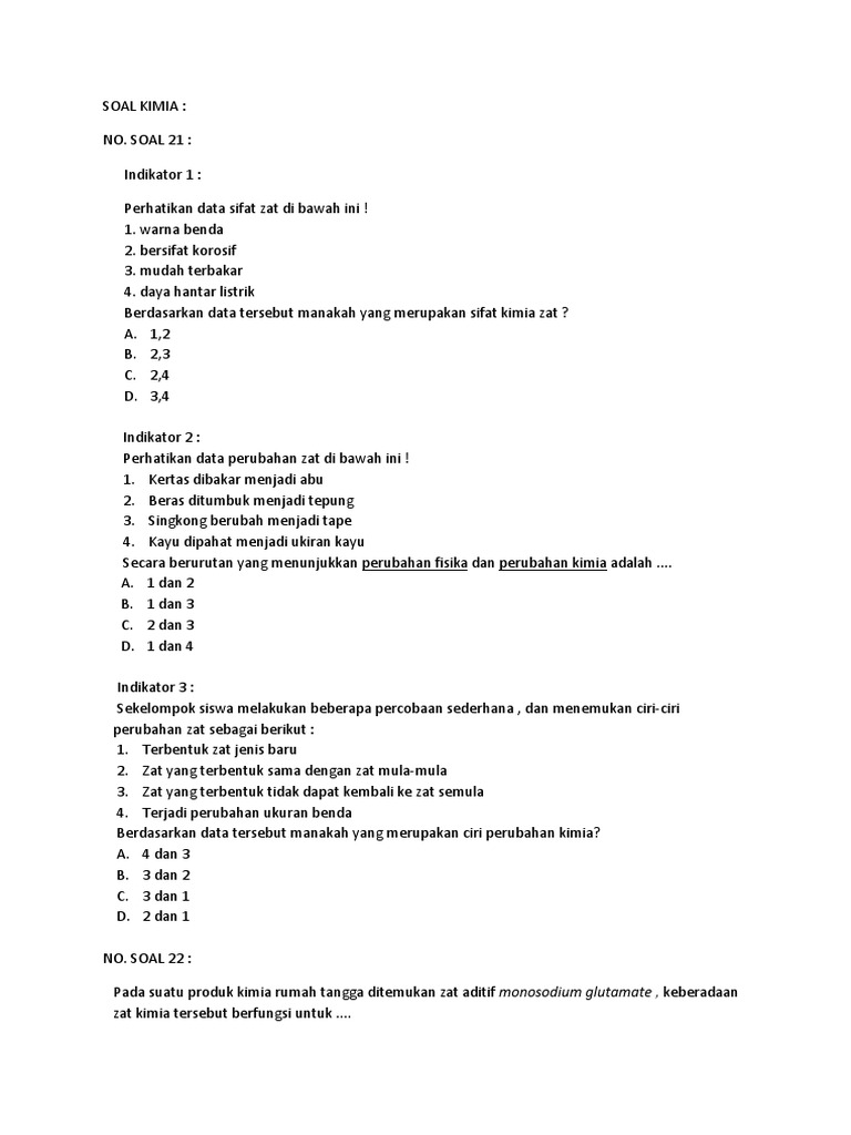 Soal perubahan fisika dan kimia kelas 7 kurikulum 2013 edisi revisi 2017 - Fisika dan Matematika