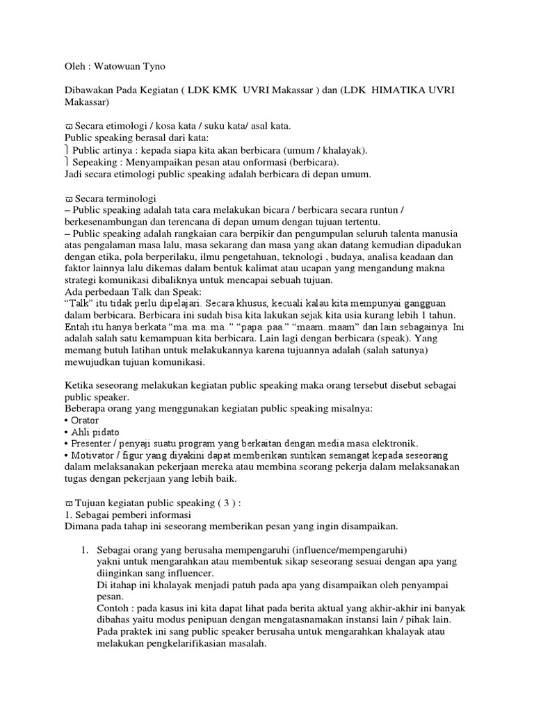 BAB 7 TEKNIK PUBLIC SPEAKING UNTUK ORATOR/PIDATO Dalam bab ini ada dua kata yang perlu menjadi perhatian pembaca selain public s
