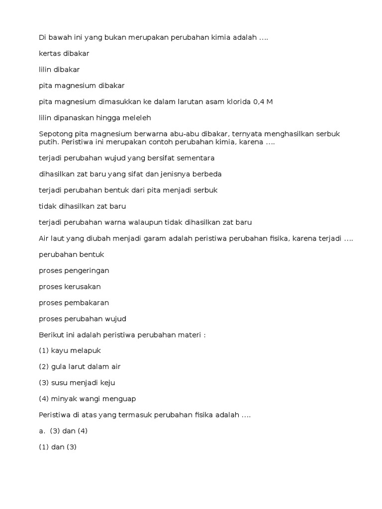 Soal perubahan fisika dan kimia kelas 7 kurikulum 2013 edisi revisi 2017 - Fisika dan Matematika