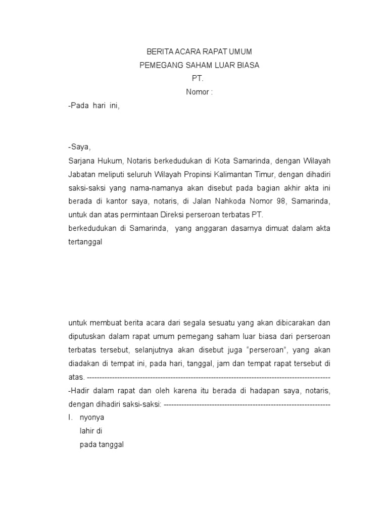 DOC) CONTOH AKTA PENGGABUNGAN PERSEROAN TERBATAS | Iskandar …