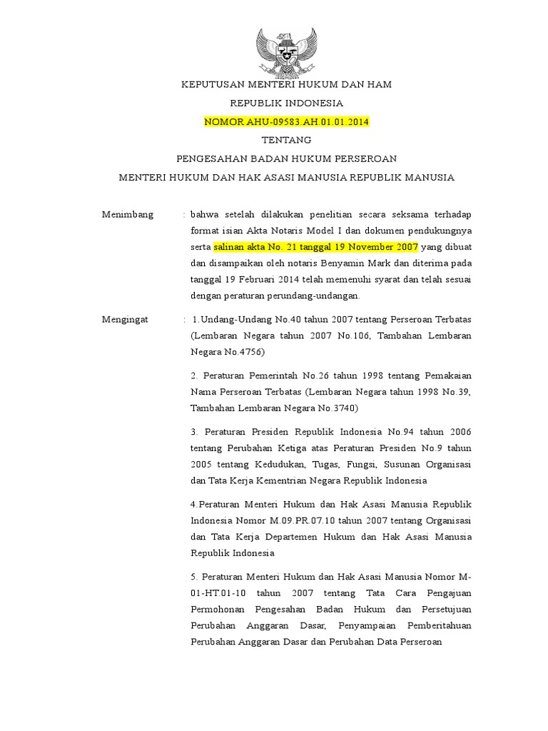 Contoh Sk Menkumham Pt - Guru Ilmu Sosial