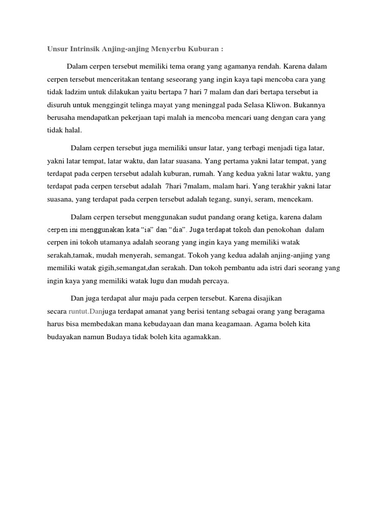 Unsur Intrinsik Ceren Kunowijoyo Anjing Menyerang Kuburan