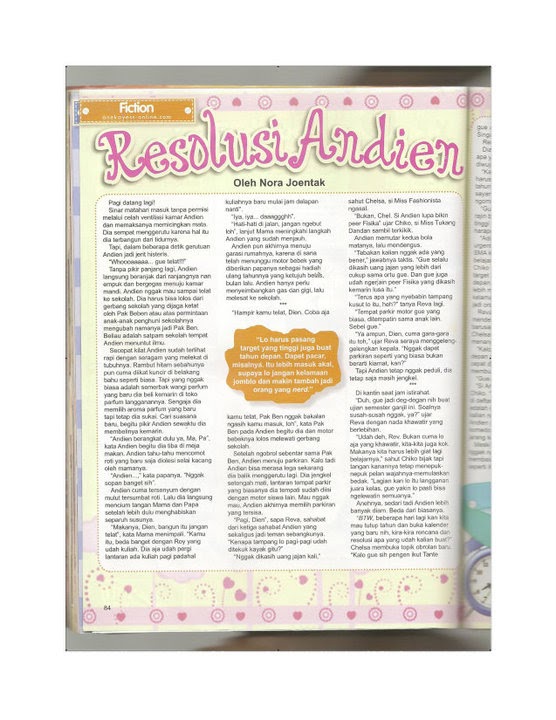 Nora Joentak: :: CERPEN: Dimuat di ANEKA YESS! (Cerpen Tahun Baru) :: RESOLUSI ANDIEN