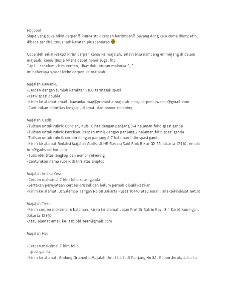 Aneka cerpen - Hallo… apa kabar? btw, admin mau nanya… | Facebook