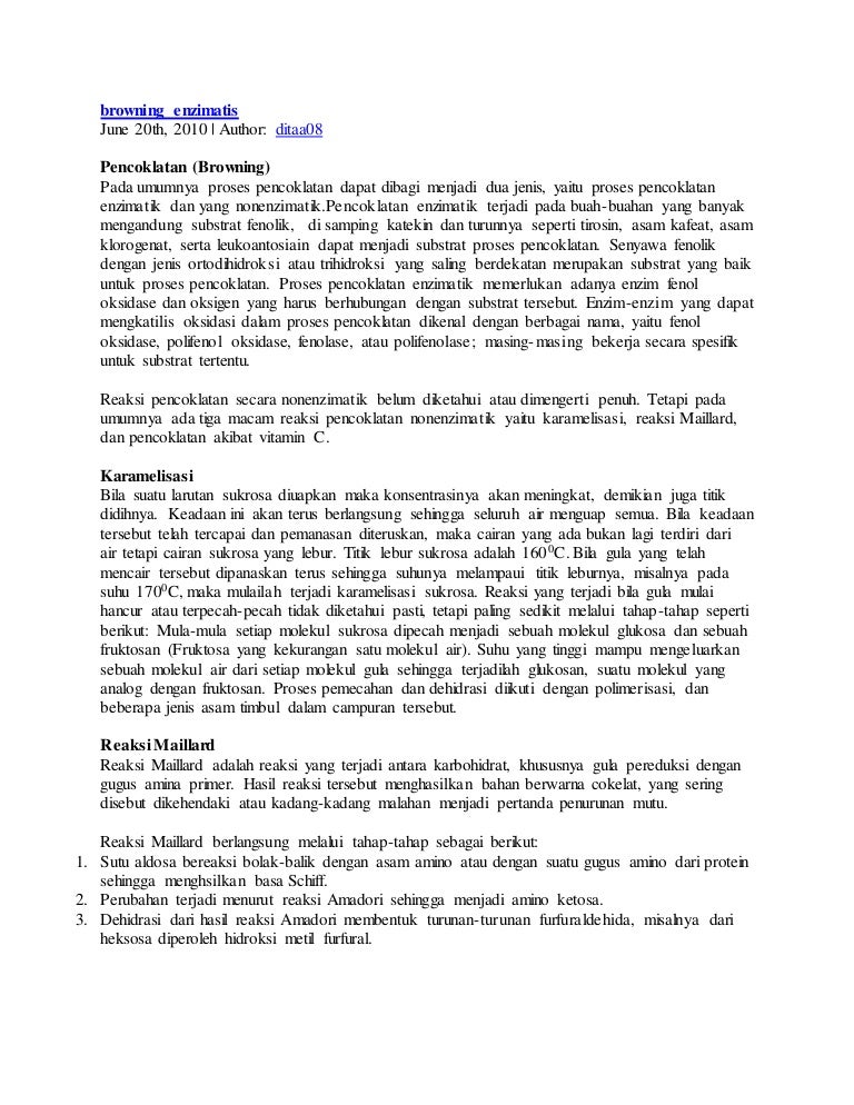 Reaksi Browning Enzimatis Dan Non-enzimatis Pada Buah dan Sayuran