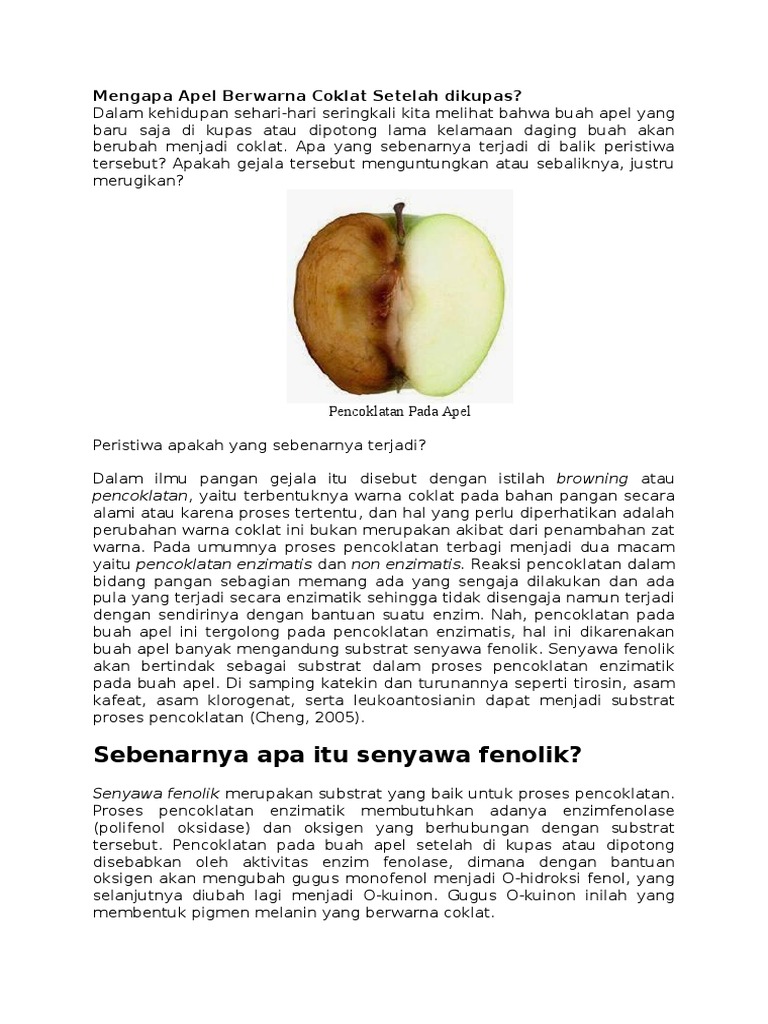 Pada apel yang dikupas terjadi perubahan warna menjadi coklat …