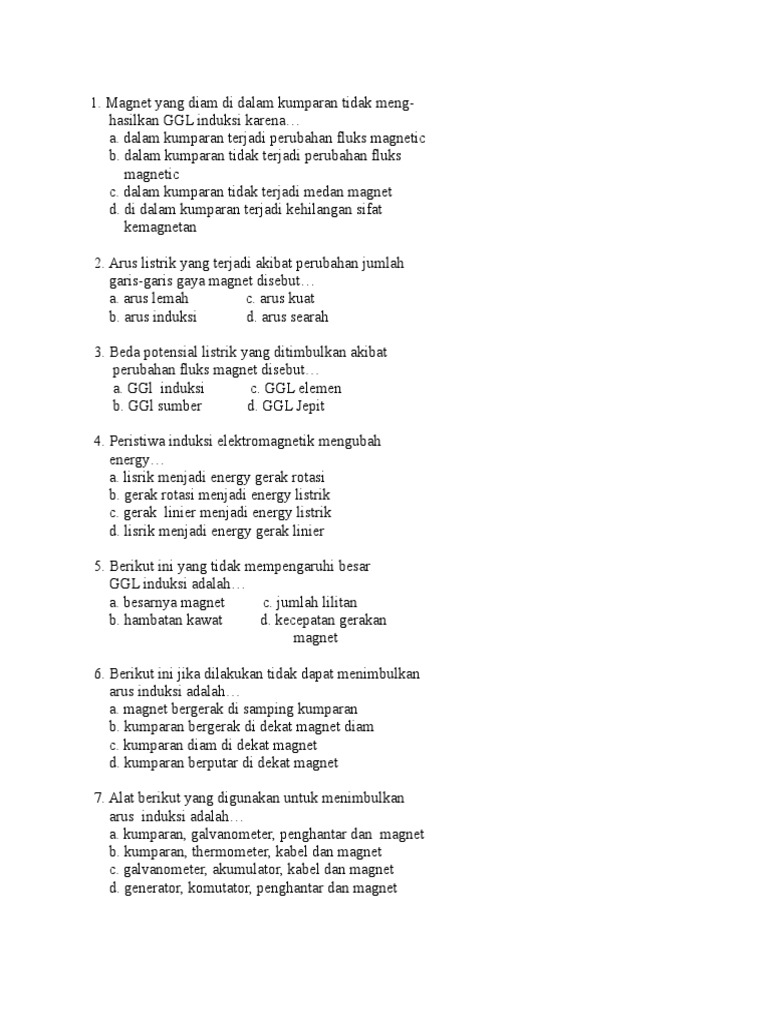 Induksi dan Fluks Magnetik Bersama Contoh Soal dan Jawaban