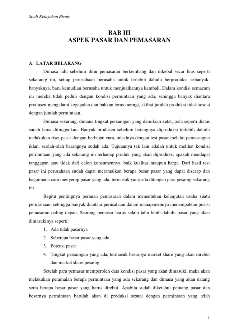 aspek pasar dan pemasaran (studi kelayakan bisnis)