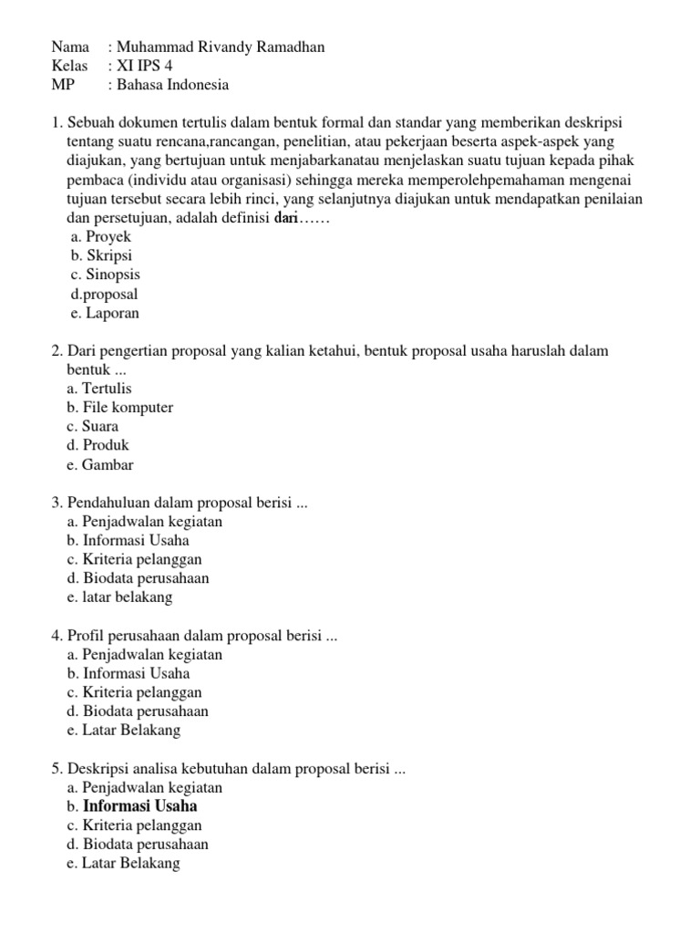 Latihan Soal Menyusun Proposal Penawaran Xii