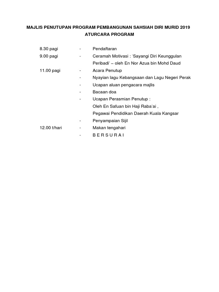 DOC) Teks Pengacara Majlis Penutupan Ihya | fadzli khamis - Academia.edu