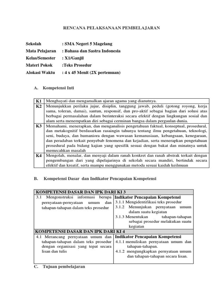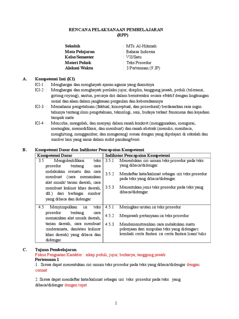 DOC) RPP BAHASA INDONESIA KELAS VII BAB 3 TEKS PROSEDUR.docx | Asisten Nur - Academia.edu
