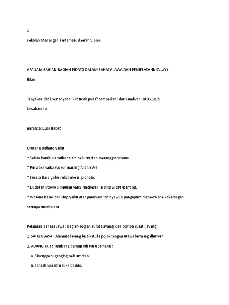 APA SAJA BAGIAN-BAGIAN PIDATO DALAM BAHASA JAWA DAN PENJELASANNYA…??? - Brainly.co.id