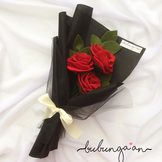 READY SIAP KIRIM ) Buket mawar 3 tangkai / bunga flanel murah / bunga wisuda | Shopee Indonesia