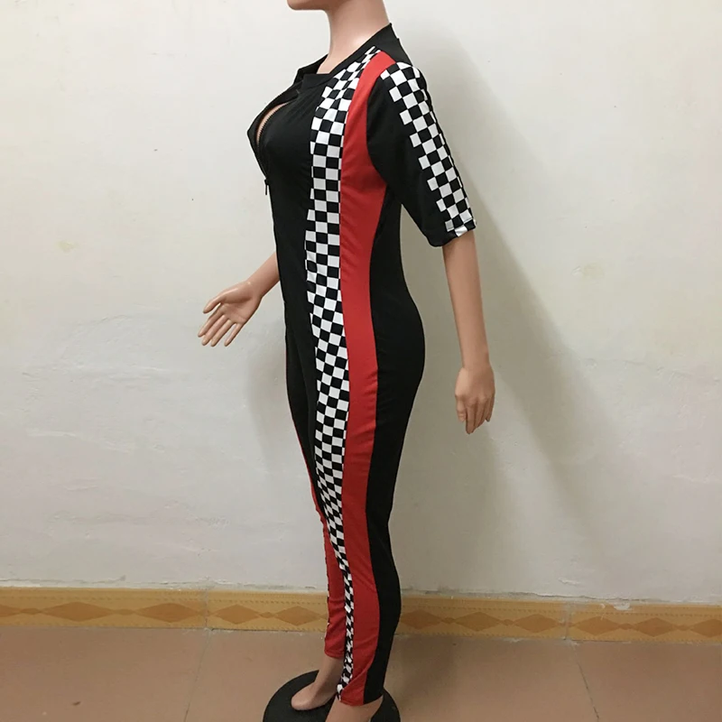 Panjang Kotak kotak Jumpsuit Wanita Baju Monyet Ritsleting Sisi Kotak kotak Celana Pendek Lengan Aktif Pakaian Latihan Yg Hangat Elastis Keseluruhan Melompat Sesuai dengan Moto Biker|Celana Kodok| - AliExpress