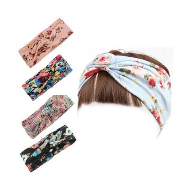 Bergaya Lucu Boho Busur Simpul Bayi Headbands Motif Bunga printing …