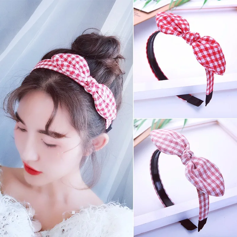 Kotak kotak Wanita Bando Telinga Kelinci Kain Busur Kepala Hoop Lucu Butik Musim Semi Musim Panas Musim Gugur Anak Perempuan Aksesoris Rambut Hiasan Kepala|Aksesoris Rambut Wanita| - AliExpress