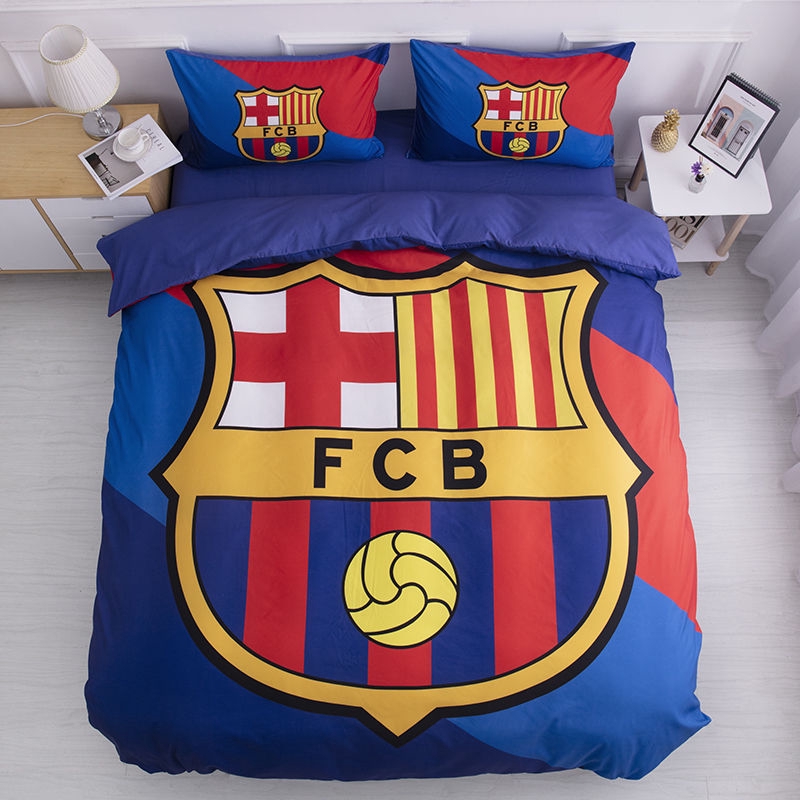 Champions League Football Three-Piece La Liga Barcelona Real Madrid Single Bed Quilt Cover Sheets Barcelona Messi Fans Bedding | Shopee Singapore