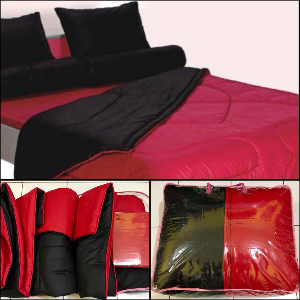 BED COVER SET POLOS BOLAK BALIK 2 WARNA MERAH DAN HITAM 180X200 …