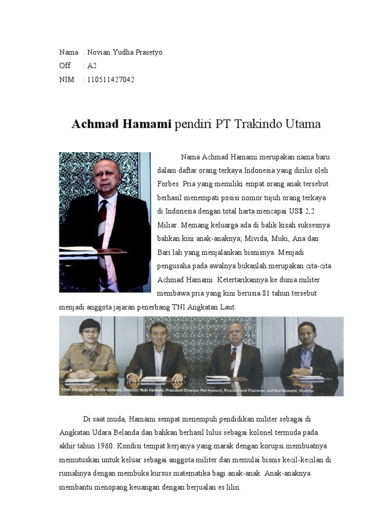 Achmad Hamami - Kaya Dengan Trakindo, Setelah Resign Dari Tempat Kerja - Biografi Tokoh Dunia