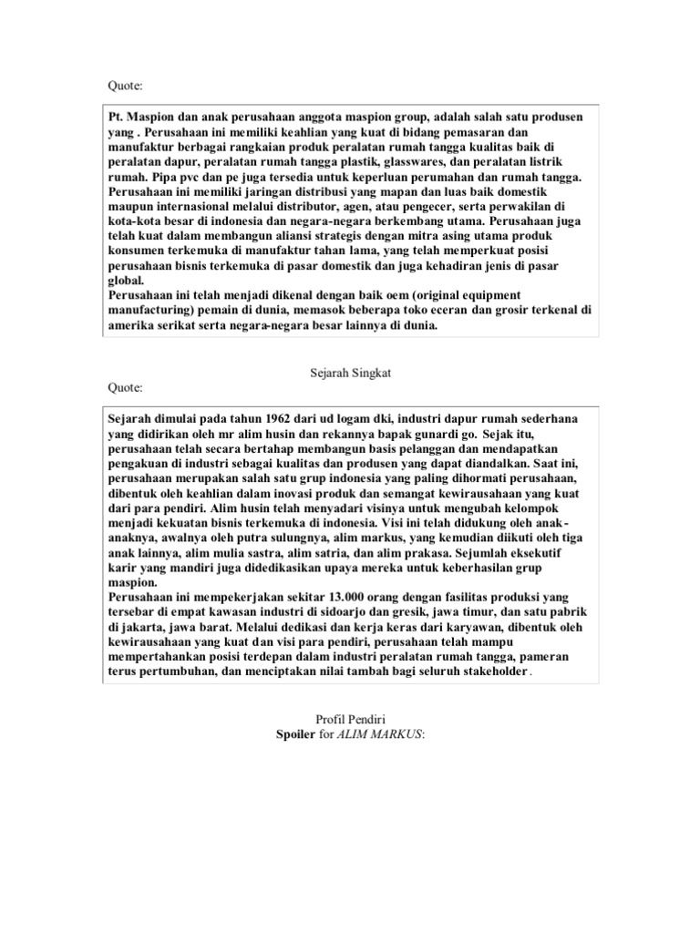Tugas Kewirausahaan: BIOGRAFI ALIM MARKUS; MASIPON GROUP