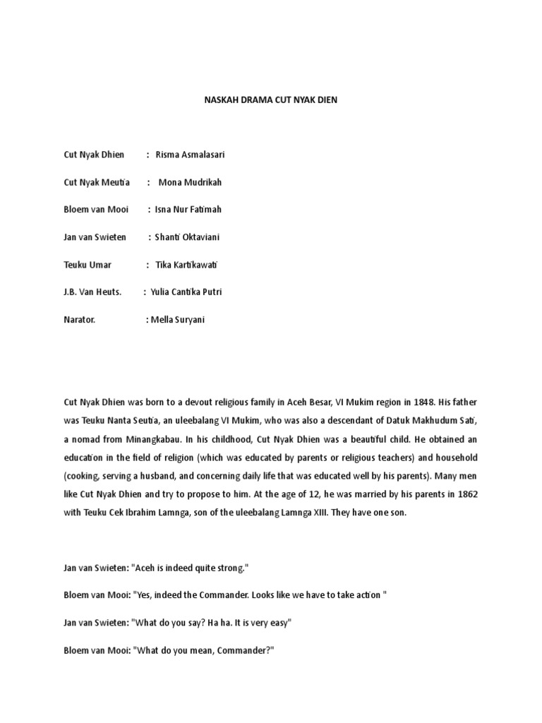 Naskah drama bahasa inggris cut nyak dhien | Indonesian People | Indonesia