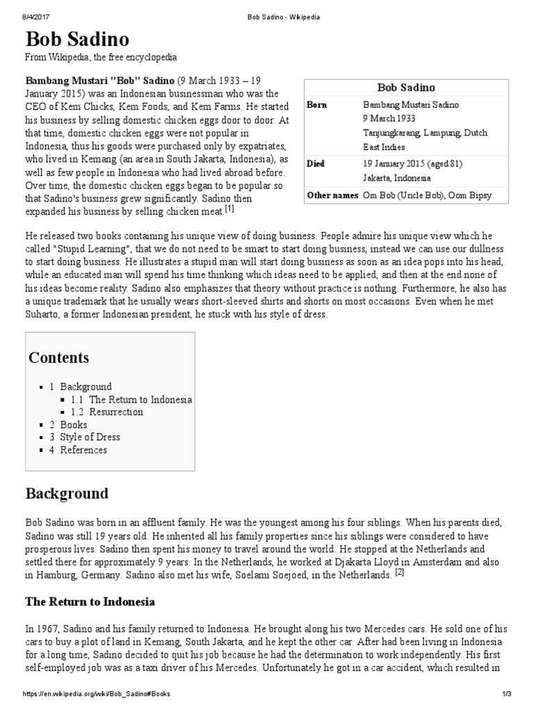 https://id.m.wikipedia.org/wiki/Bob_Sadino - Pebisnis Muda Nusantara | Facebook