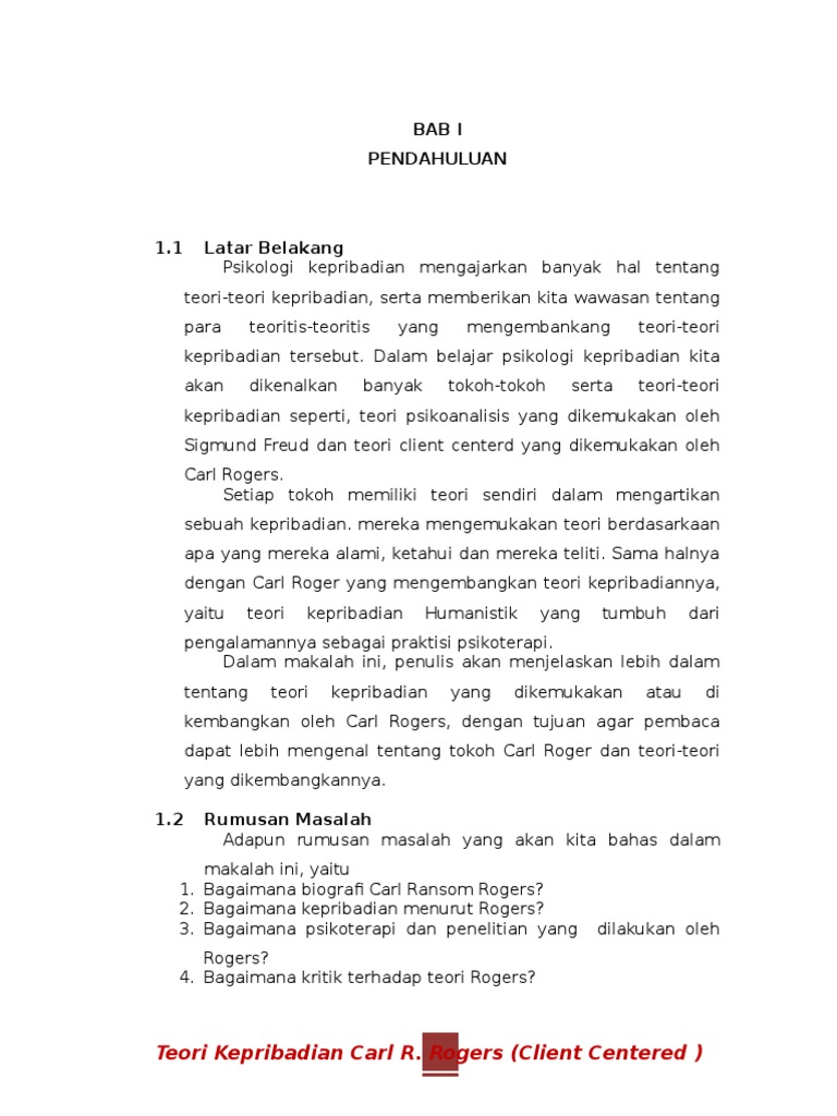 MAKALAH PPD CARL ROGERS.docx - BAB 1 PENDAHULUAN A LATAR BELAKANG Psikologi kepribadian merupakan salah satu cabang dari ilmu psikologi Dimana psikologi | Course Hero