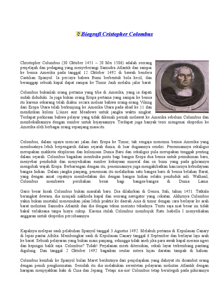 SAHABAT AZHAR: BIOGRAFI CHRISTOPHER COLUMBUS