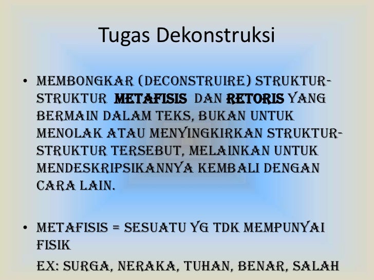 MEMBONGKAR TEORI DEKONSTRUKSI JACQUES DERRIDA - Boekoe Theotraphi