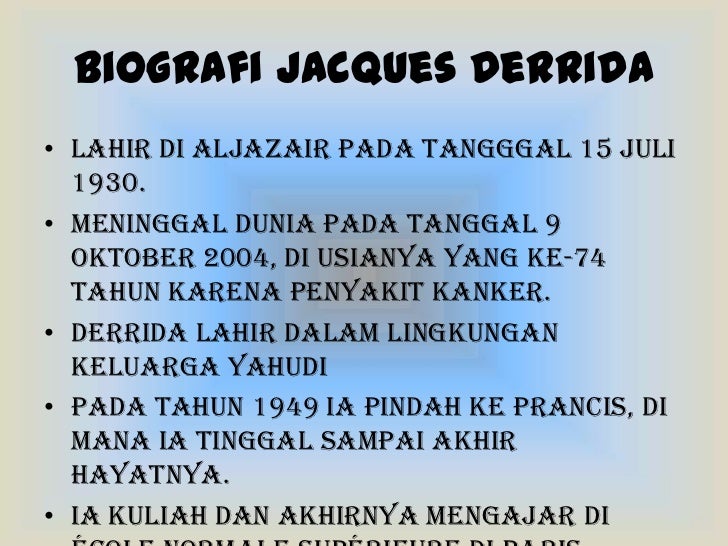 PDF) DERRIDA; BIOGRAFI DAN PEMIKIRAN | Pamor Aji - Academia.edu