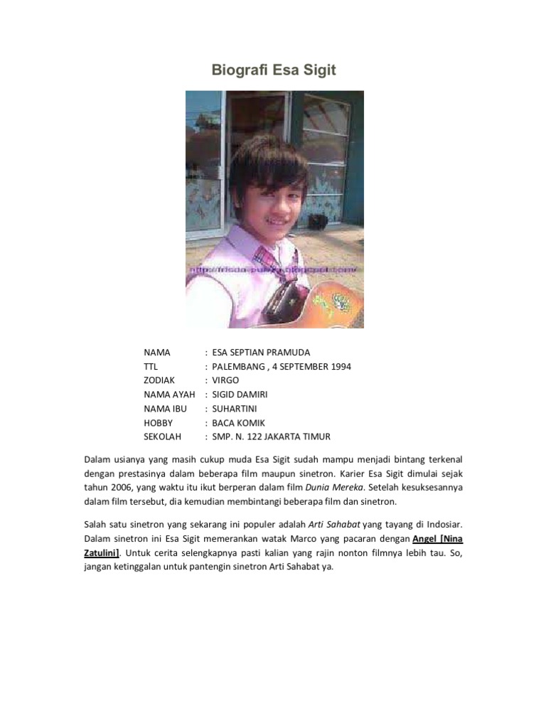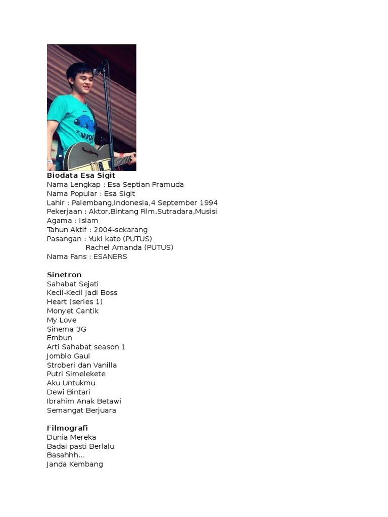Biodata Artis Indonesia - Esa Sigit - Wattpad