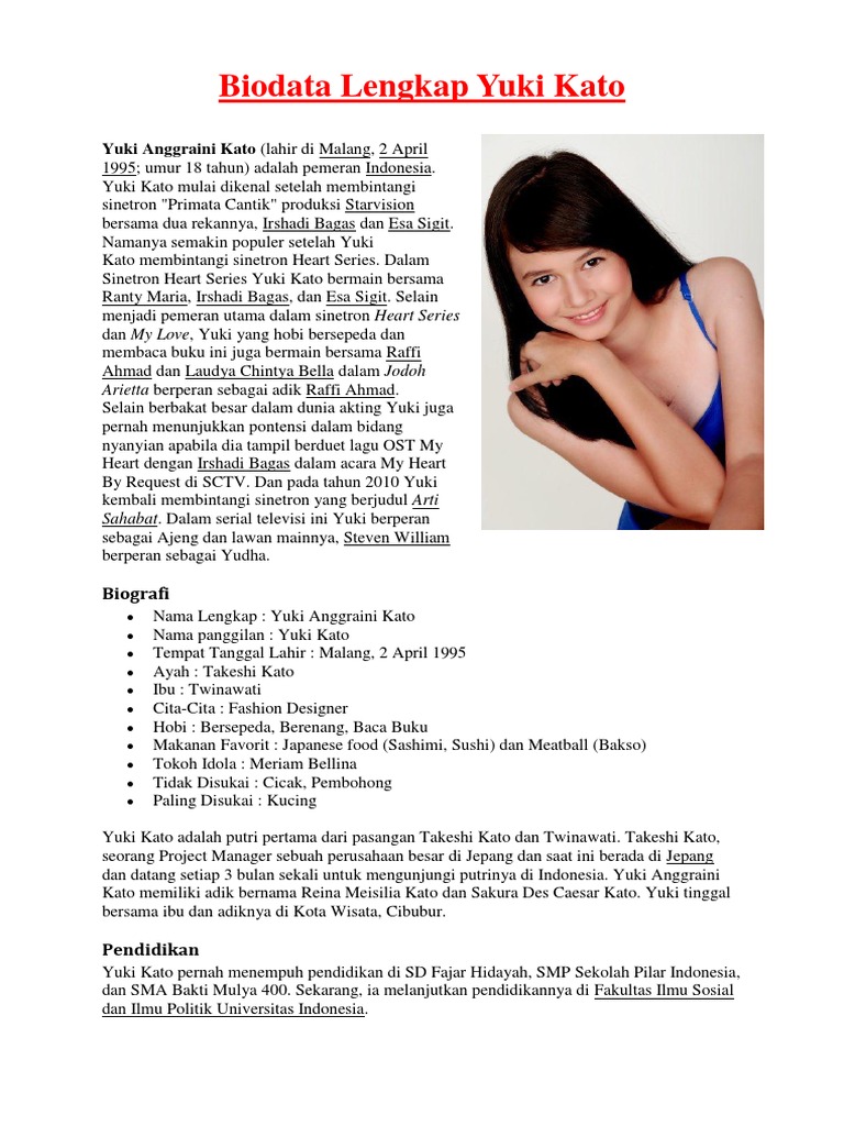 Biodata Lengkap Yuki Kato