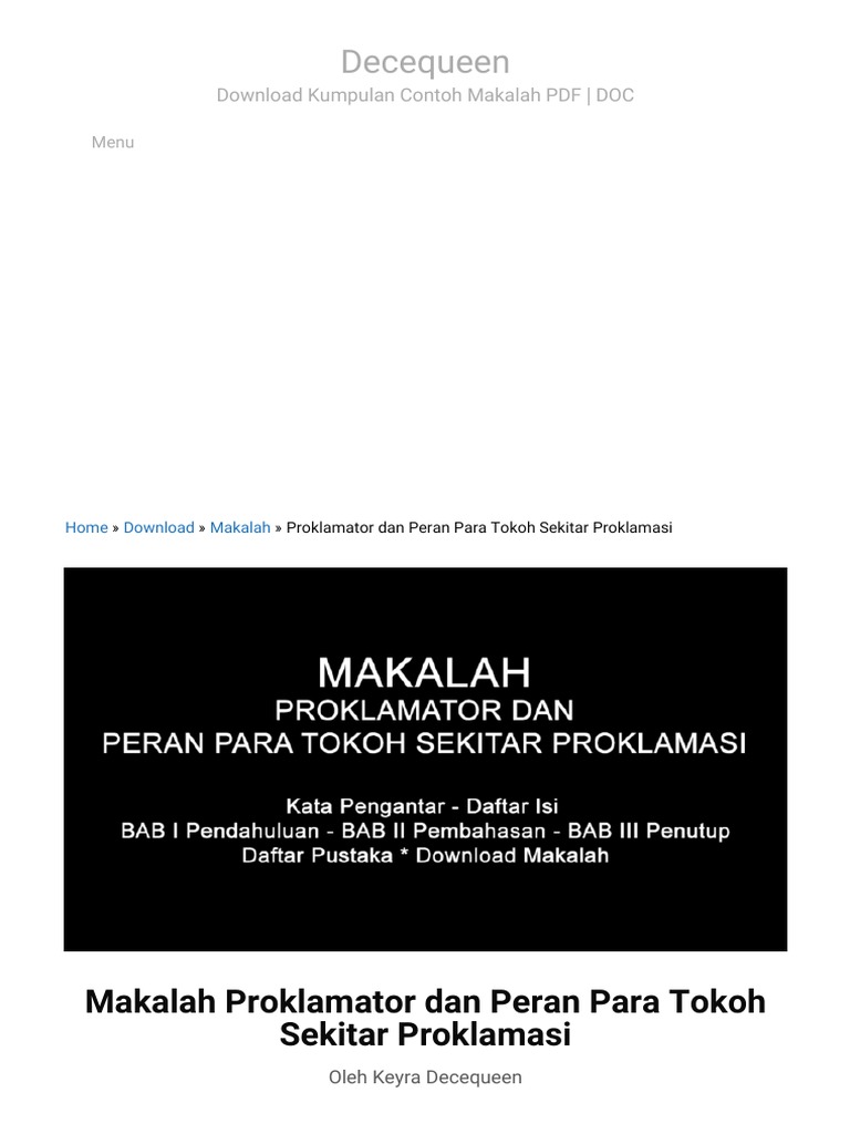Contoh Makalah Proklamator dan Peran Para Tokoh Sekitar Proklamasi DOC | PDF Download Lengkap