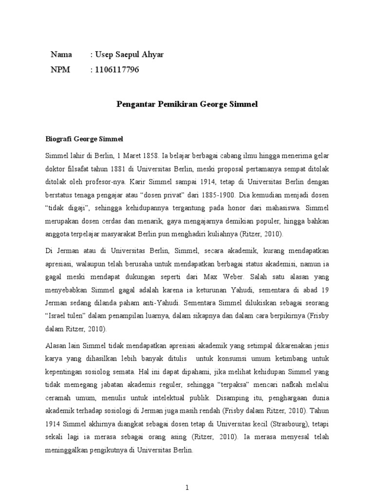 DOC) George Simmel Biografi dan Pandangannya | Marianus Ivo - Academia.edu