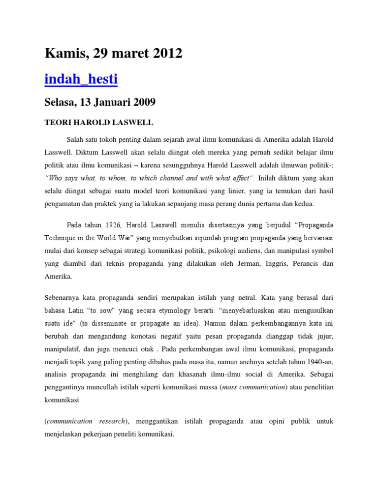 DOC) MAKALAH ILMU KOMUNIKASI TENTANG HAROLD D. LASSWELL | Irene Runa Frisca Sitorus - Academia.edu