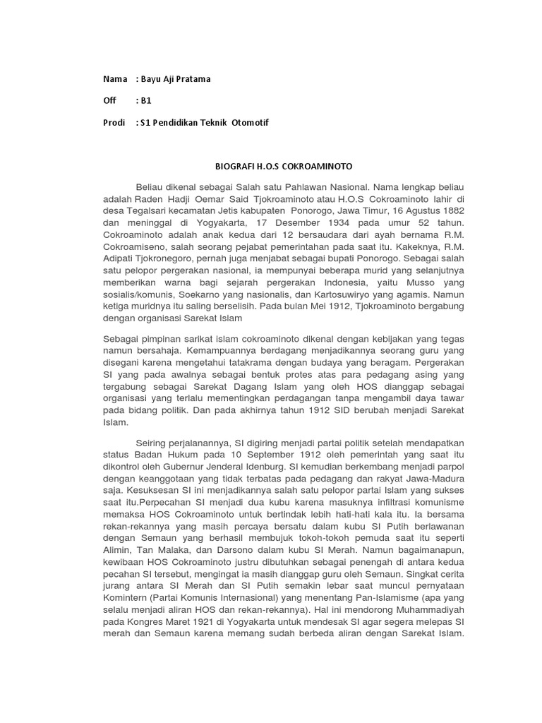 DOC) Analisis Biografi Hos. Tjokroaminoto | muhammad ifaza - Academia.edu