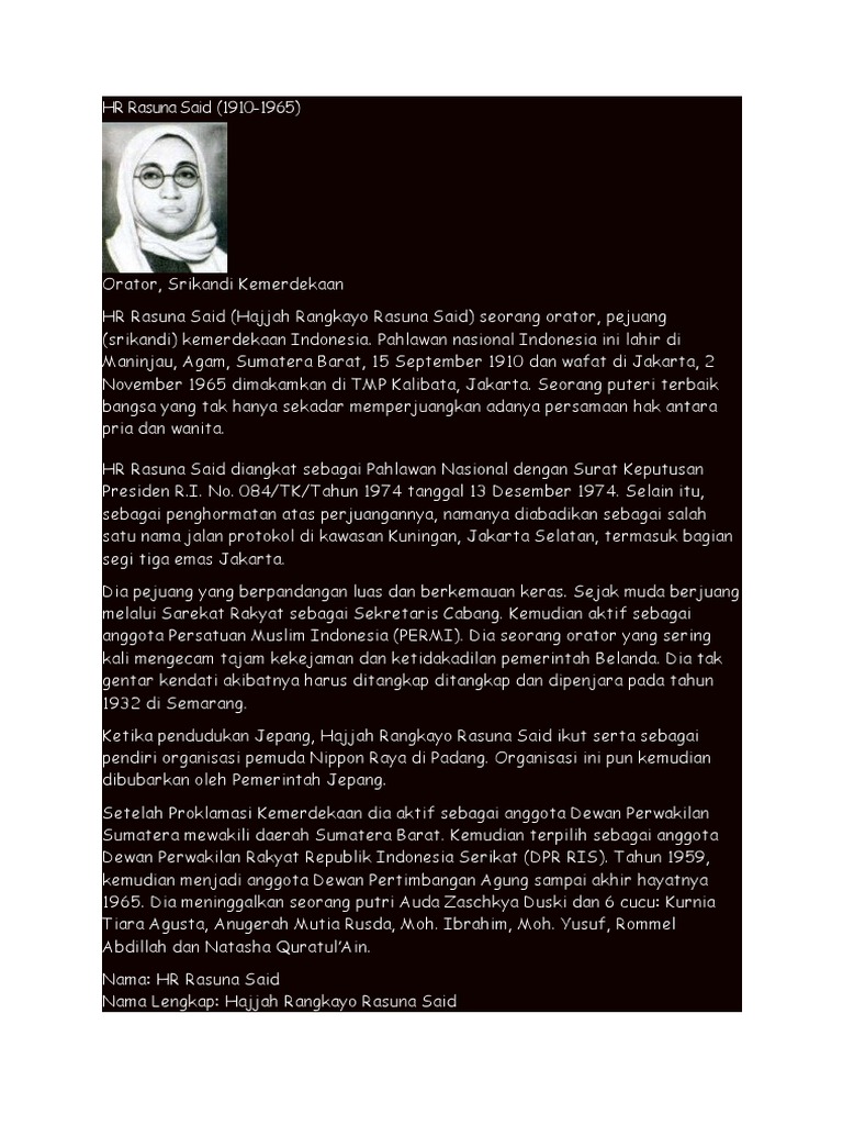 KAAY’s Official on Twitter: “Sekilas Biografi HR Rasuna Said. http://t.co/PIxvyHOg0V #Pahlawan #TokohIndonesia #WonderWomen #PahlawanWanita http://t.co/WCzGOxfYeG”