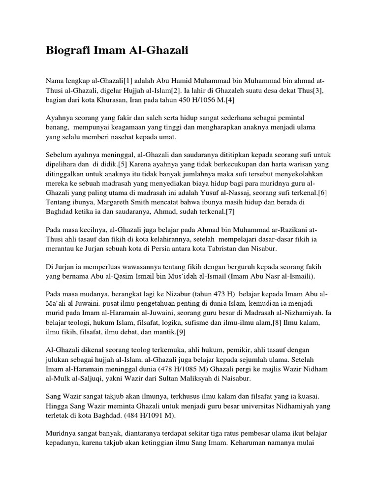 DOC) Biografi Singkat Al Ghazali | Abdul Rohman Suyuti - Academia.edu