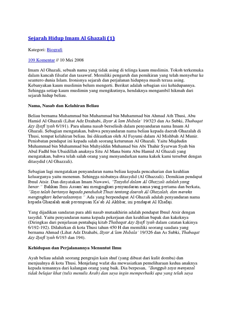 DOC) Biografi Imam Al Ghazali | Tirta Realty Group - Academia.edu