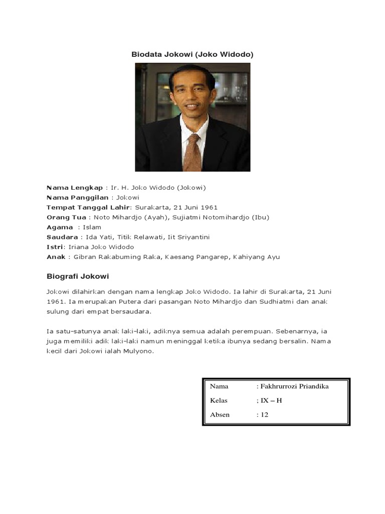 DOC) Biografi Jokowi -Ir. H. Joko Widodo | Kelas P-AA - Academia.edu
