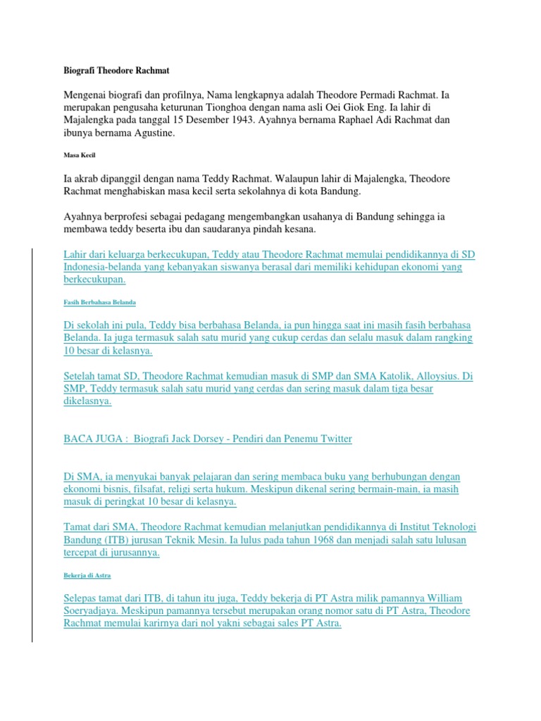 Biografi Theodore Rachmat: Masa Kecil